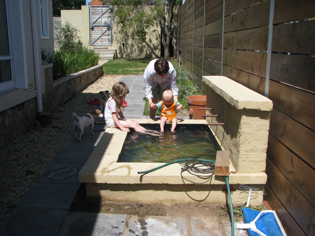 Another hassle with ponds is that in our hot and windy climate they always needing refilling due to losses through evaporation – sometimes you think you have sprung a sudden leak after a hot and windy day! This means you either need to keep filling it up – or rig up some fancy ball valve arrangement from the mains.